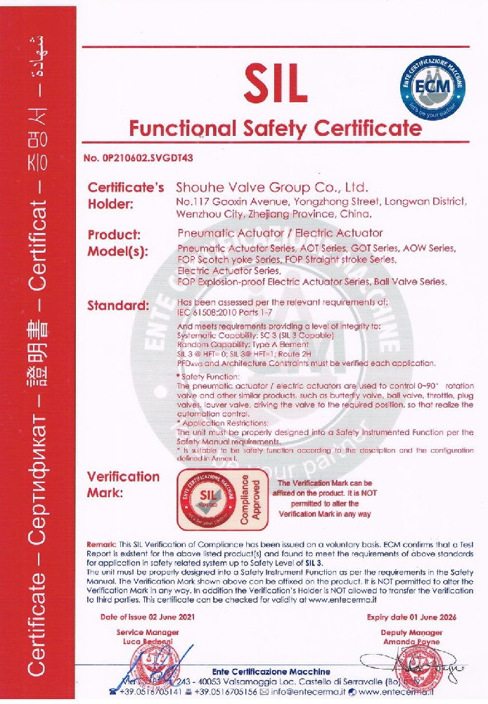 SIL功能安全證書